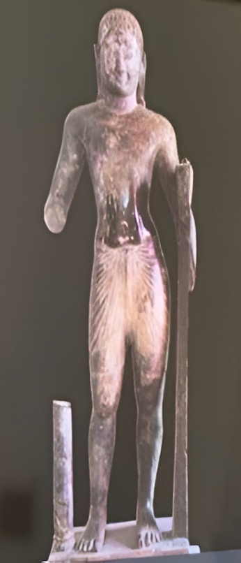 A small section of the pleat is left to protrude at the back. This is characteristic of the Sampot worn by male divinity in the Phnom Da style.”