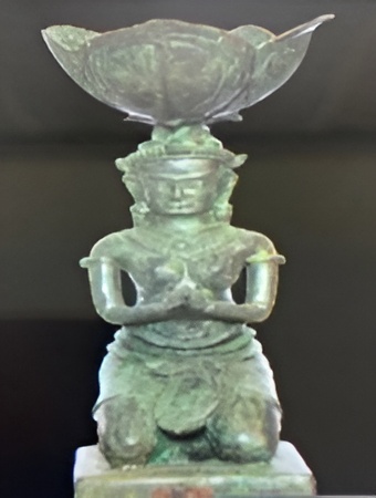 “This work is a bronze censer shape in a lotus flower form, supported by a kneeling female figure. It may have also function as a lamp.