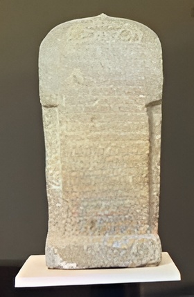 This is an inscribed stela make of sandstone. The inscription discusses offerings. Its origin of this object is Tuol Prasat, in Melok village,Pea Reang district, in Prey Veng province. It was first sighted in 1998, and later local authorities decided to presented to the National Museum of Cambodia.