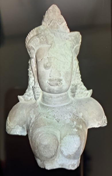In contrast, if project type of beauty, which reflected the creativity of the Khmer artists at the time. The statue conveys little meaning if view by itself. This is because used to belong to a group of statues that originated from Prasat Kraham, where a large statue of Shiva was in the center, surrounded by figures of lady Kalichamuda. This word is a combination of two Asuras, Chan and Muda, that lady Chan and Muda had killed. It is very rare to see a statue depicting Kalichamuda.