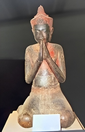 “This is a kneeling worshipper made of wood. Local authorities presented this item to the National Museum for preservation. Unfortunately, there is no recorded information to explain its origin find, location, date, or era.