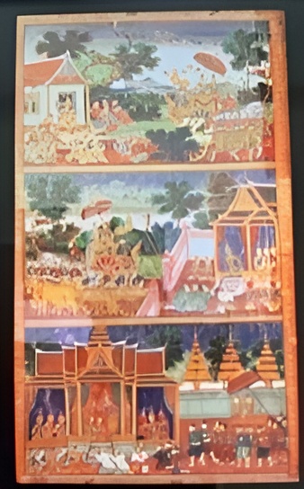 Middle section, Rama Lakshmana and Jupa Lakshmana accompanied by their concubines make the journey to invite Sita to return home.