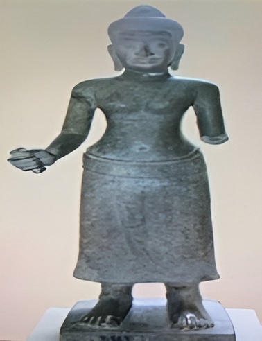 The body posture appears stiff and the feet are rather large, which is typically characteristic of sculptures during the era of King Jayavaraman VII.”