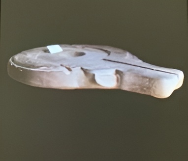 Most Yoni in the collection at the National Museum of Cambodia are made of schist as in this case. Each one of them has a rectangular shape, a channel for releasing sacred water, and a round or rectangular hole in the middle for fitting and supporting the Linga. Yoni tends to be rectangular shape that represent Uma, the consort of Shiva. But this item in the collection at the National Museum has the shaped of a buffalo head.