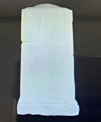“This object is a sandstone inscription. It was found by French archaeologist Etienne Meunier in 1886, in the central tower of Ta Prohm temple, in Siem Reap province. It was later brought for display and registration into the collection of the National Museum. The inscription on three of the four faces contains 72 lines each.